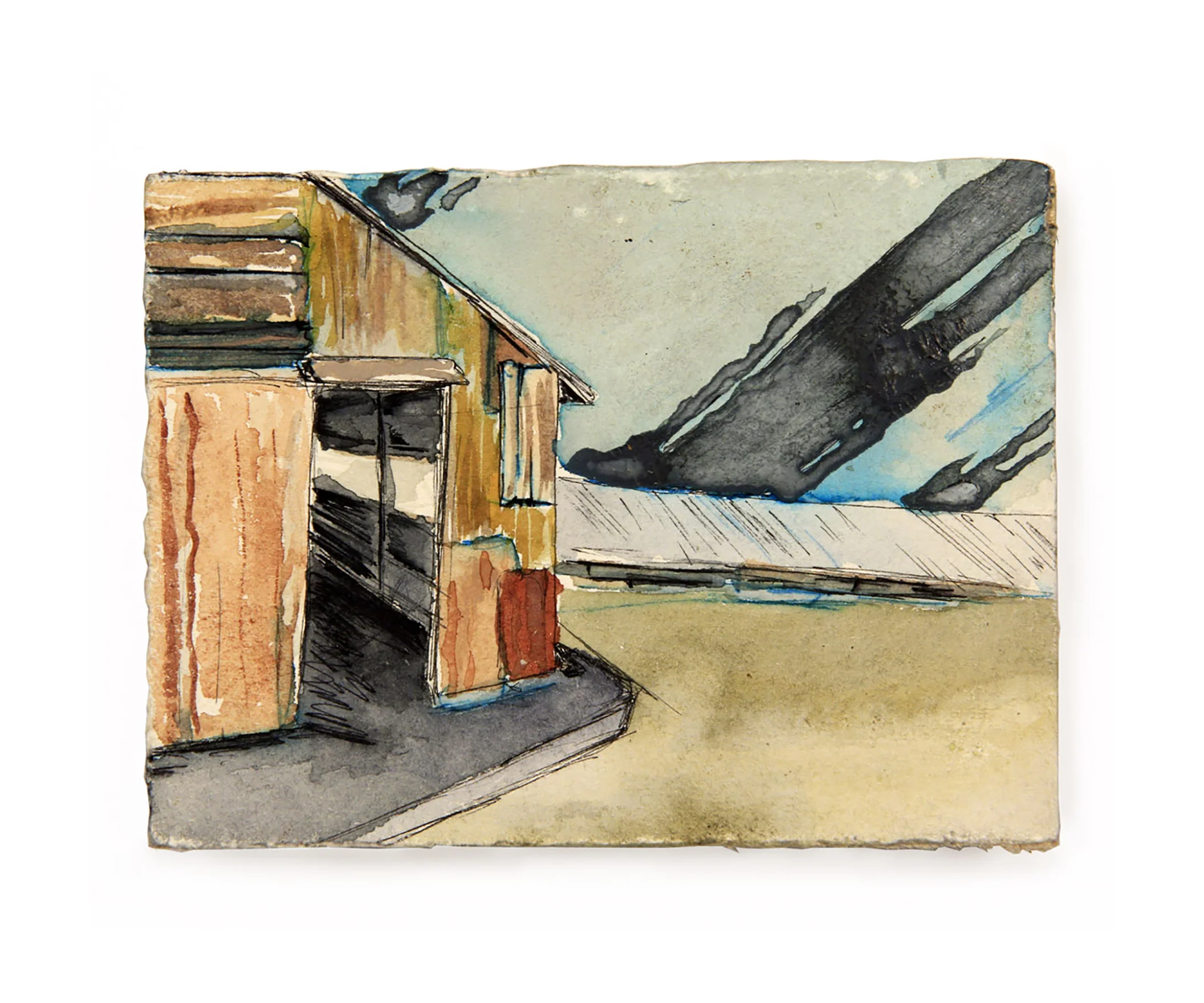 Barnfront, 2013, watercolor on paper mounted on panel, 4.75 x 6 .5 x 1.5 inches