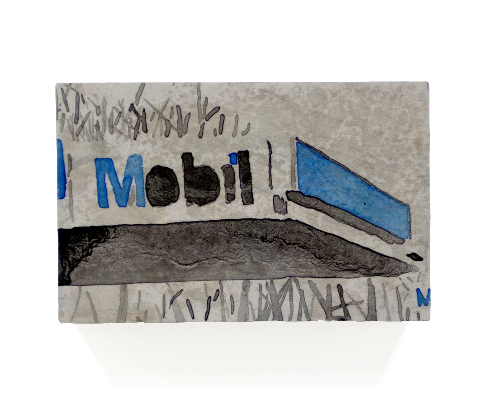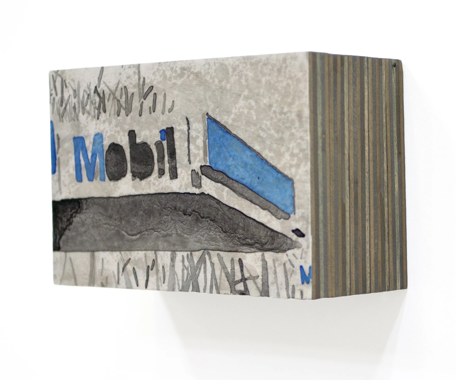 Mobil Gas Roof, 2015 (side view), watercolor and gouache on mylar mounted on panel, 5.5 x 8.5 x 3.5 inches