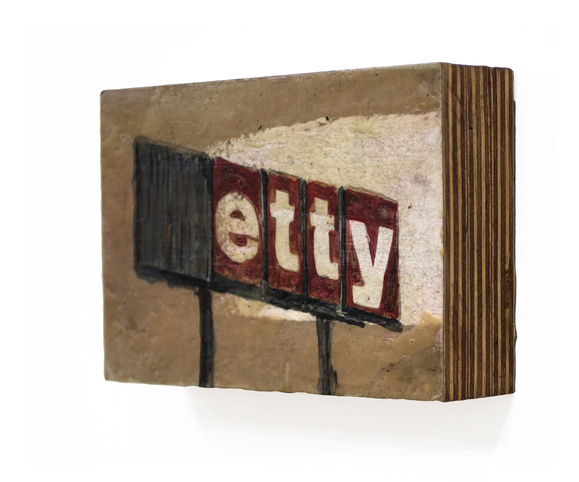 Etty Gas, 2014 (side view), watercolor and gouache on mylar mounted on panel with resin, 6.5 x 9.5 x 2.5 inches