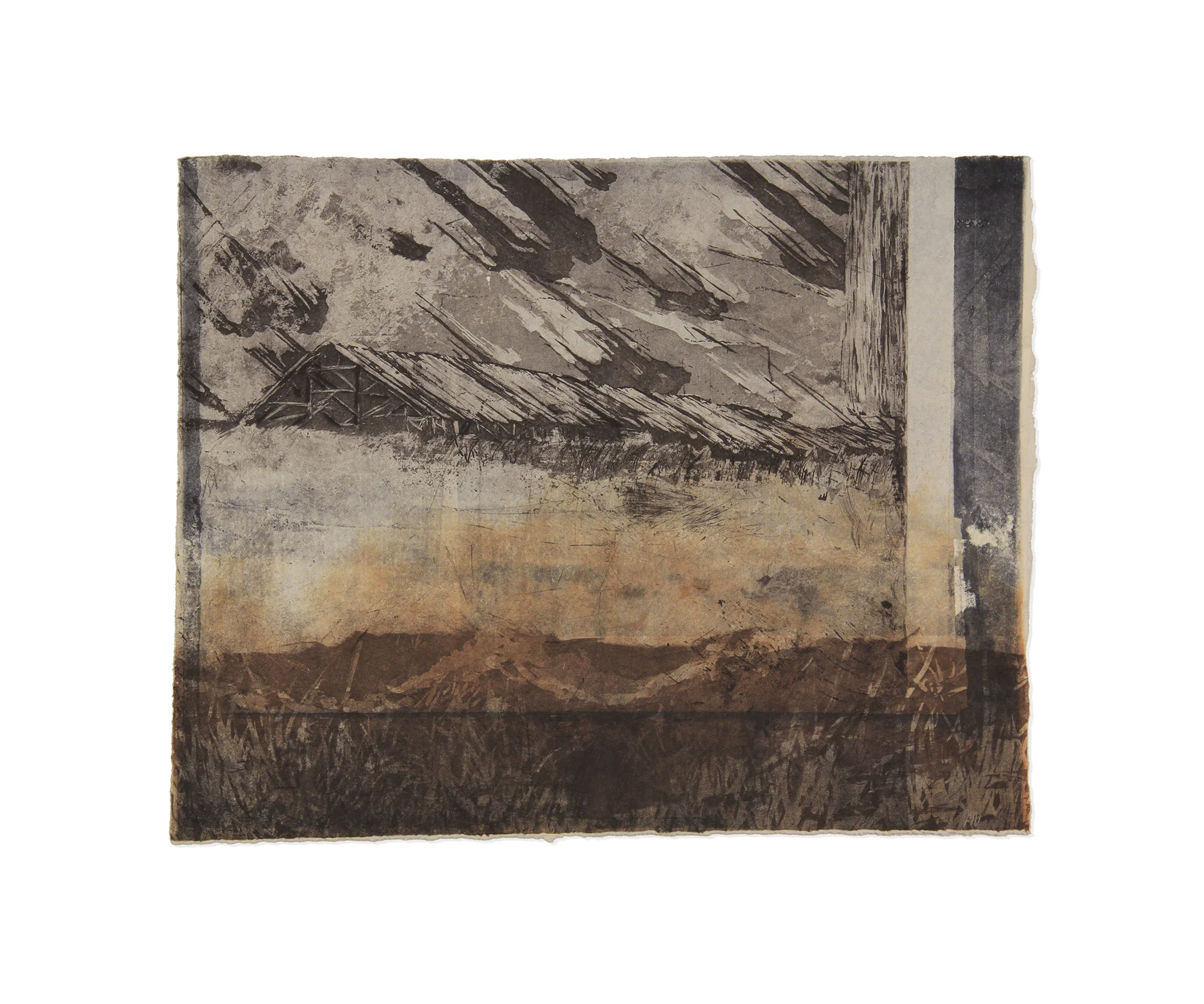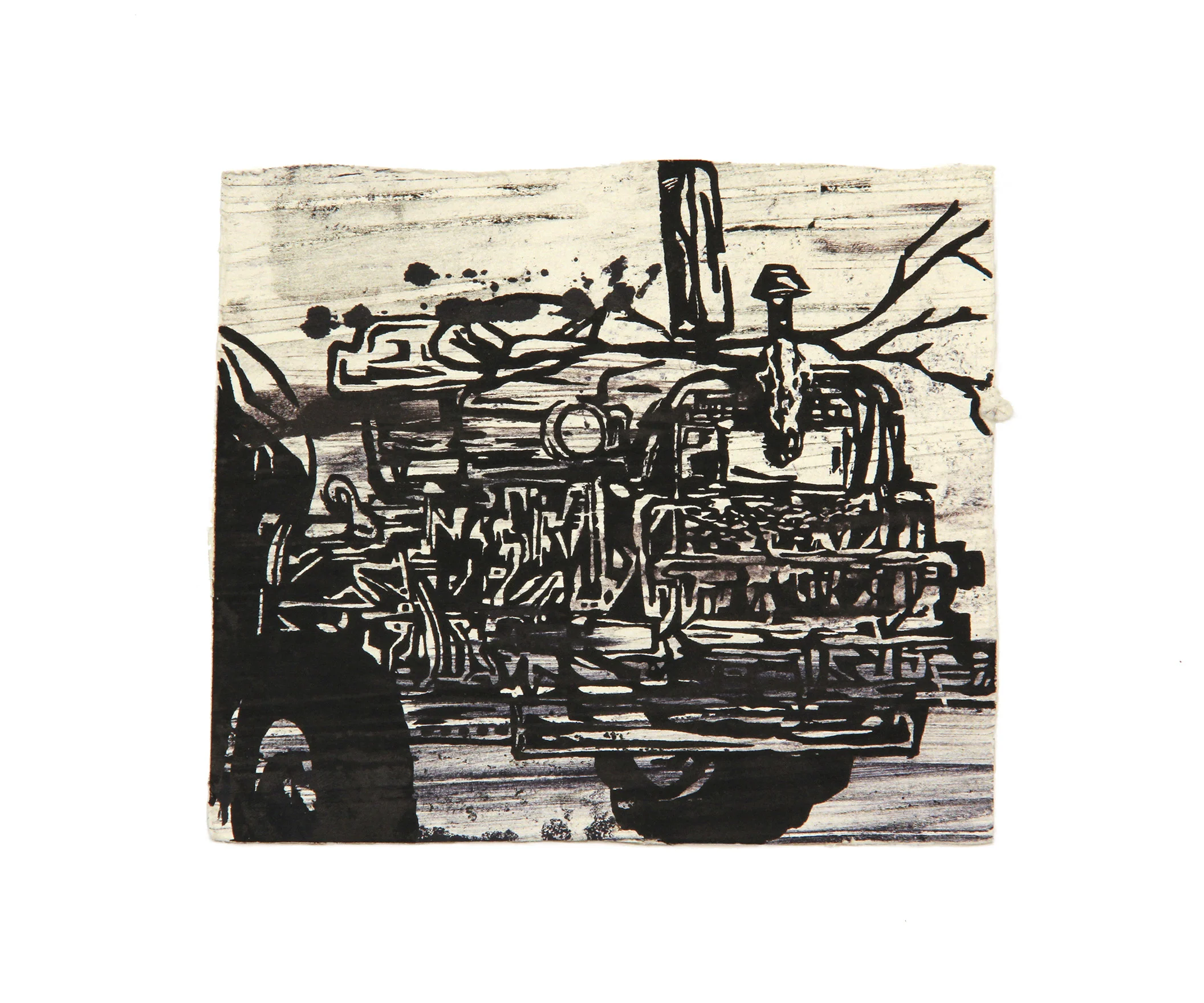 Tractor Side, 2013, woodcut over etching, 6.5 x 7.5 inches